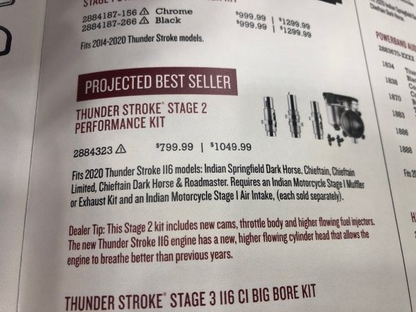 Foi "vazado" (não anunciado oficialmente, deixaram a entender pela documentação de kits stage 2) que o motor Thunder Stroke 116 será o padrão para toda a linha touring (Springfield, Chieftain, Roadmaster). As Chief permanecerão, por enquanto, com o 111.